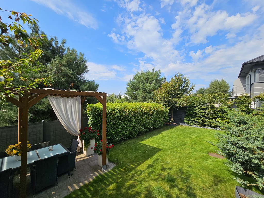 W ogrodzie znajdują się drzewa i krzewy, które zostały specjalnie nasadzone (dom był kupiony z zupełnie pustą działką), tworzą one cudowną atmosferę dając bardzo dużą prywatność w każdej ze sfer relaksu w ogrodzie oraz przyjemny cień. Została także położona trawa z rolki, żeby uniknąć zbyt dużej ilości chwastów w trawniku.