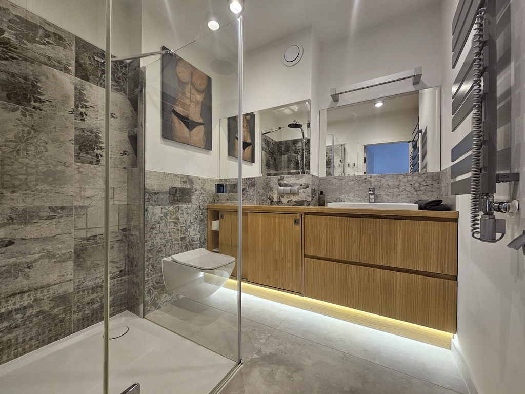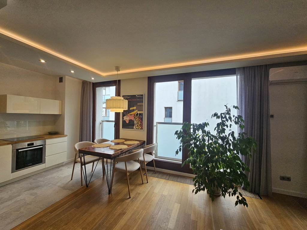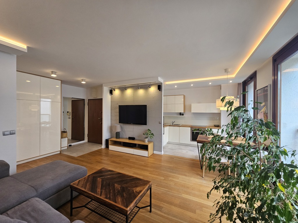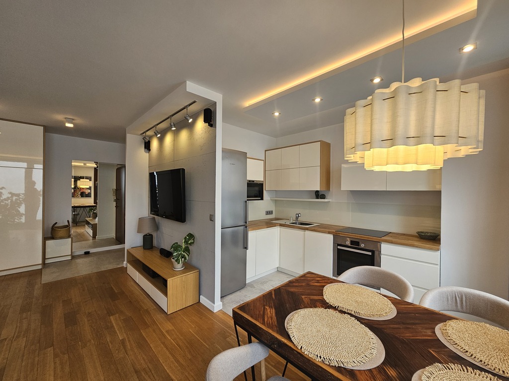 Zapraszam do oglądania tego pięknego, 2-pokojowego mieszkania. Jest to urokliwa, w pełni wyposażona nieruchomość o powierzchni 56 m2 z miejscem parkingowym w garażu podziemnym. Wszystko w mieszkaniu jest zaprojektowane bardzo gustownie przez projektanta wnętrz z myślą o jego mieszkańcach. W apartamencie jest bardzo dużo światła oraz przestrzeni do przechowywania pod postacią szaf, szafek. Bezpośrednio z salonu i sypialni mamy wyjście na duży i wygodny balkon. Przy sypialni znajduje się bardzo pojemna garderoba z półkami.