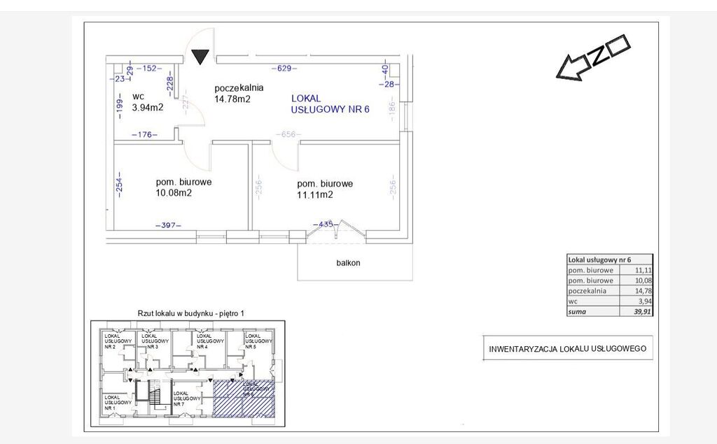 Lokal usługowy nr 6 - powierzchnia - 39,91 m2 = cena 498 875 zł