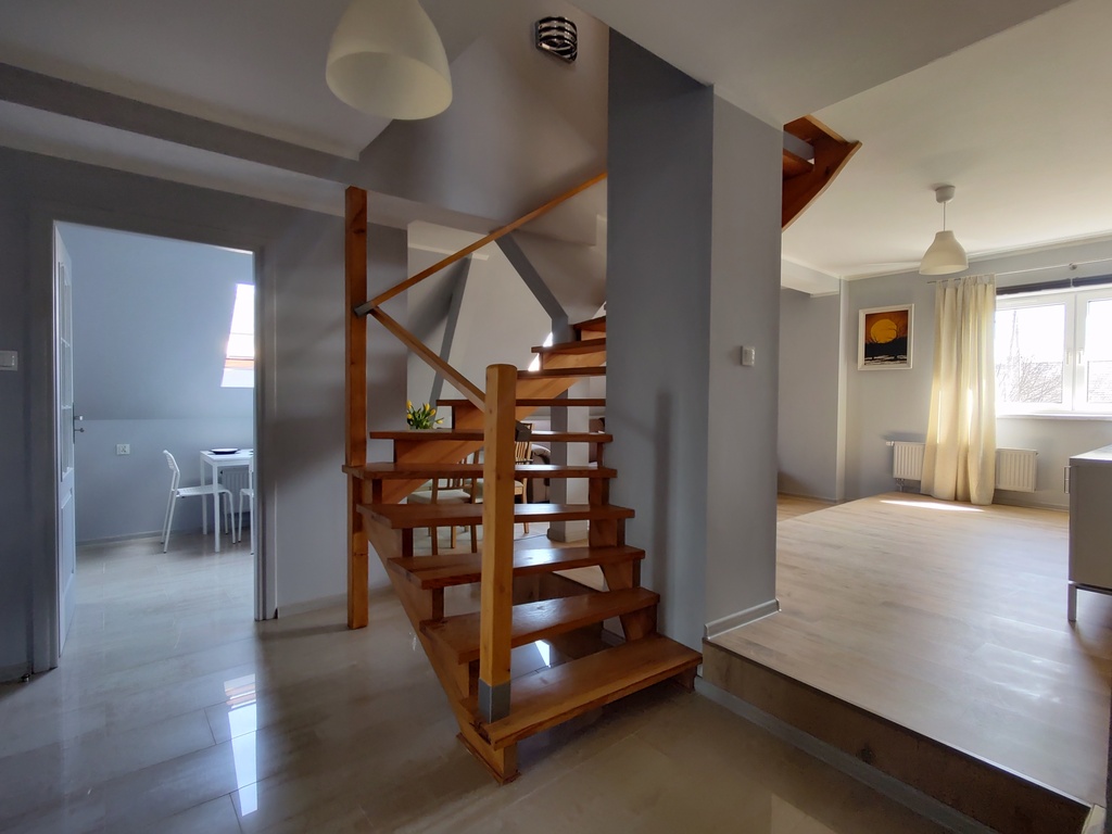 Ściany i sufity w mieszkaniach wykończone są gładzią gipsową, malowane. Na podłogach ułożone są panele podłogowe. Na klatce schodowej oraz w mieszkaniu na parterze ściany pokryte są tapetami – malowane. Posadzka w całym mieszkaniu na parterze wykonana jest z płytek ceramicznych. Dwa mieszkania wyposażone są w urządzenia klimatyzacyjne. Na poddaszu wstawiono okna połaciowe.