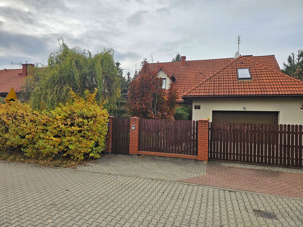 Cały teren jest ogrodzony (deski drewniane, kamień), brama wjazdowa oraz garażowa posiada automatyczny napęd. Zainstalowany wideo-domofon. Na elewacji znajduje się oświetlenie zewnętrzne, które wieczorem i w nocy pięknie podkreśli bryłę domu. Na posesji z przodu domu znajdują się 2 miejsca parkingowe zewnętrzne. Cały teren jest uzbrojony w instalację alarmową, czujniki ruchu oraz okablowanie do zewnętrznego monitoringu.