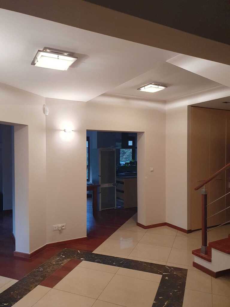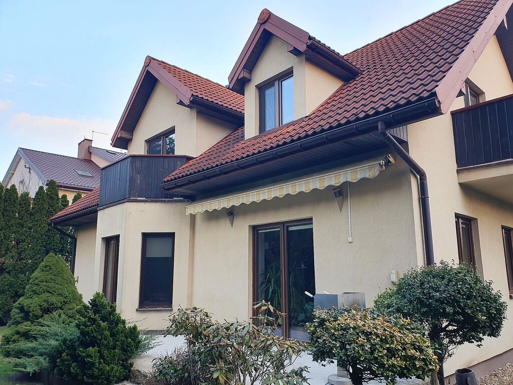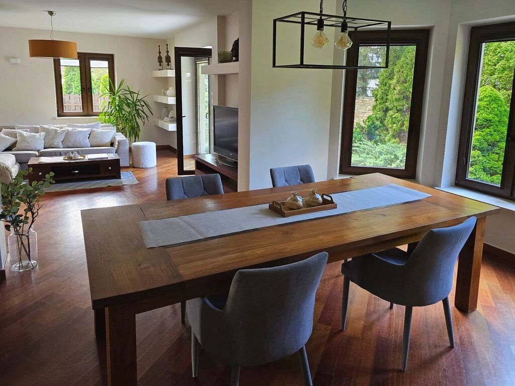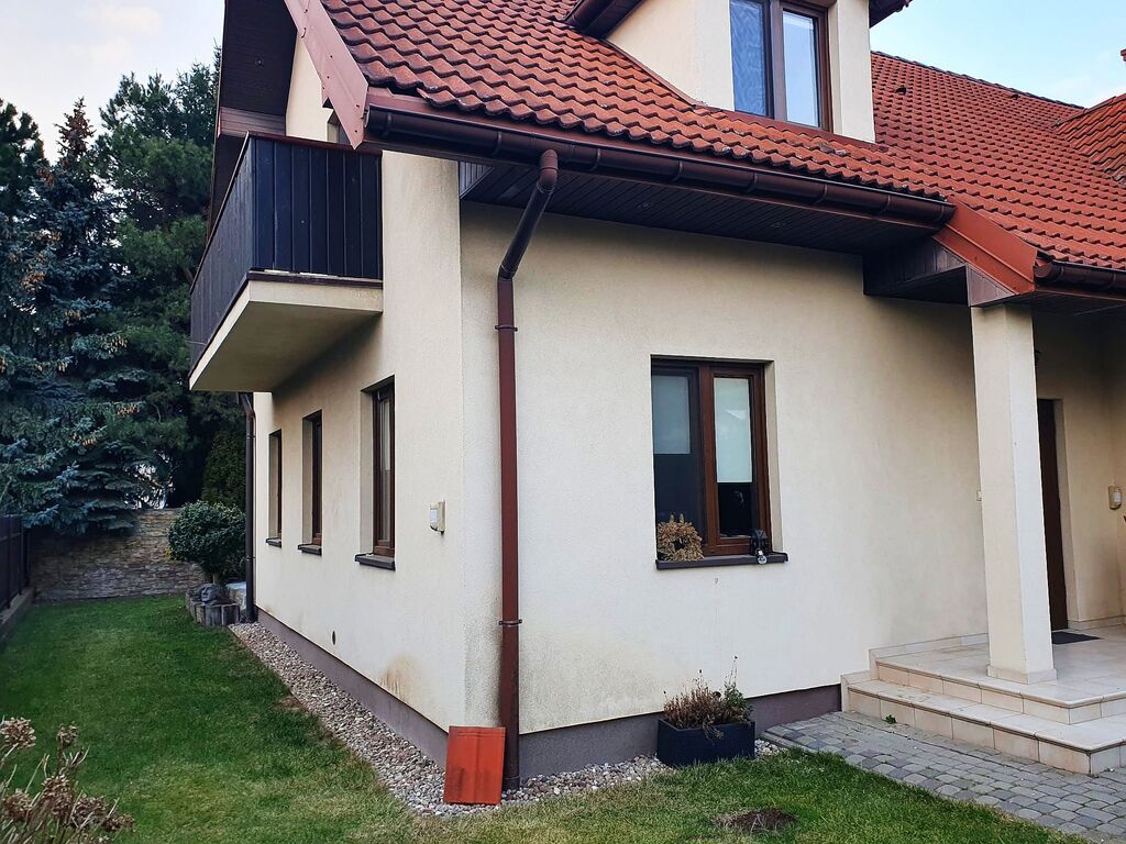 Nieruchomość składa się łącznie z 6 pokoi, 2 łazienek, garażu dwustanowiskowego, dużej kotłowni z pralnią. W całym domu znajduje się dużo specjalnie zaprojektowanej i stworzonej zabudowy pod postacią sufitów podwieszanych, szaf, półek, wnęk. Zadbano także o różnorodne oświetlenie pomieszczeń (punktowe, kinkiety, górne) tworząc w ten sposób wyjątkową atmosferę o każdej porze. W salonie znajduje się wykusz z oknami cudownie doświetlający przestrzeń jadalniano-kuchenną. Na podłogach w całym domu została położona deska z drewna egzotycznego oraz gres (w zależności od funkcji pomieszczenia). Z tego samego drewna wykonano zabudowę schodów oraz poręcze. Wewnątrz domu znajduje się instalacja alarmowa oraz sterownik do centralnej obsługi ogrzewania.