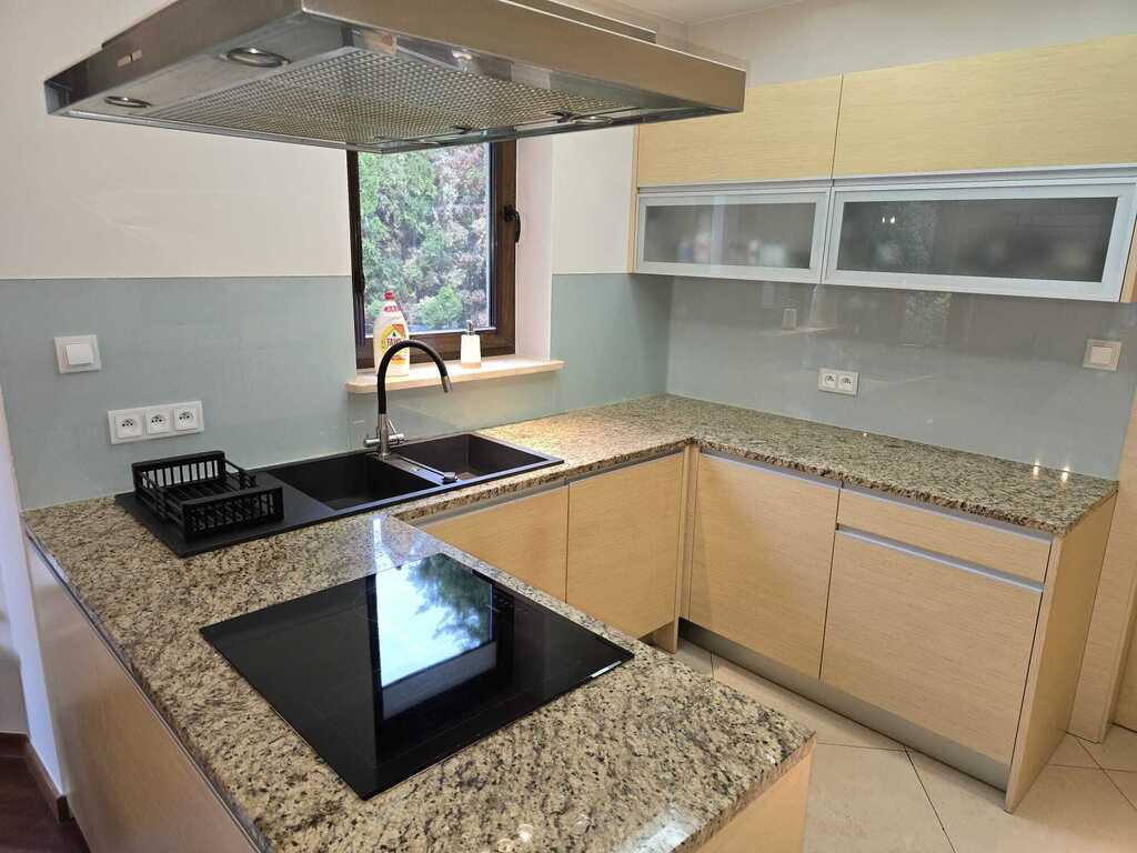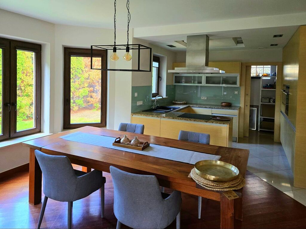 - otwarta kuchnia z wyspą z wydzieloną jadalnią oraz spiżarnią. Wszystkie blaty wykonane z kamienia naturalnego