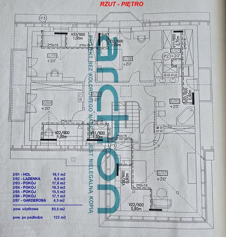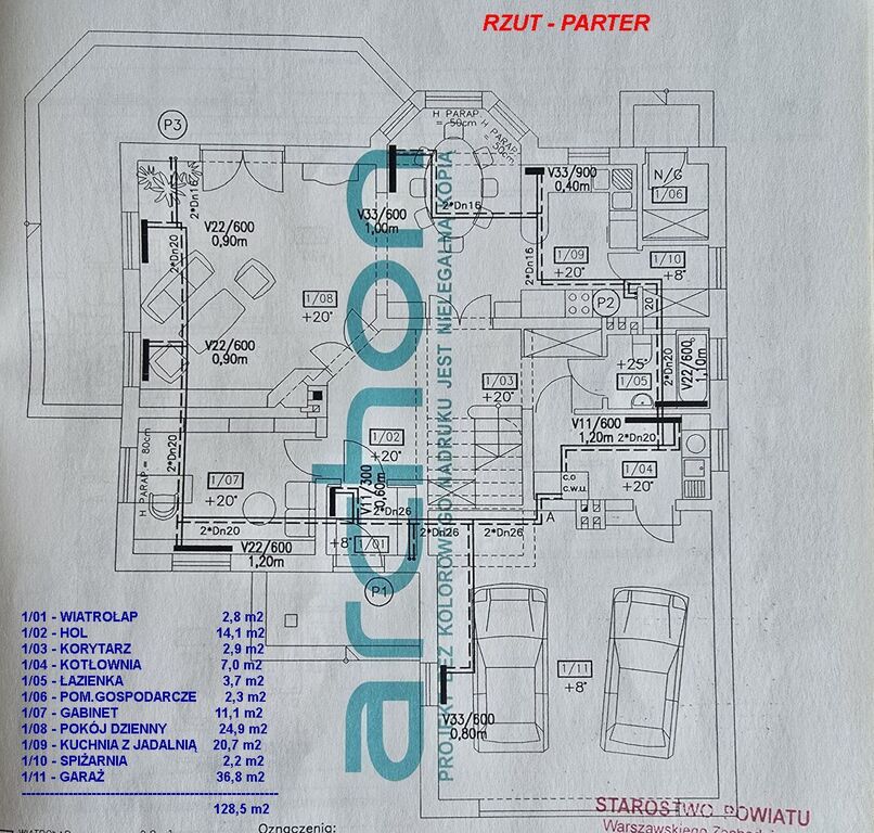 - powierzchnia domu (po podłodze) – 250,5m2 - użytkowa 222 m2