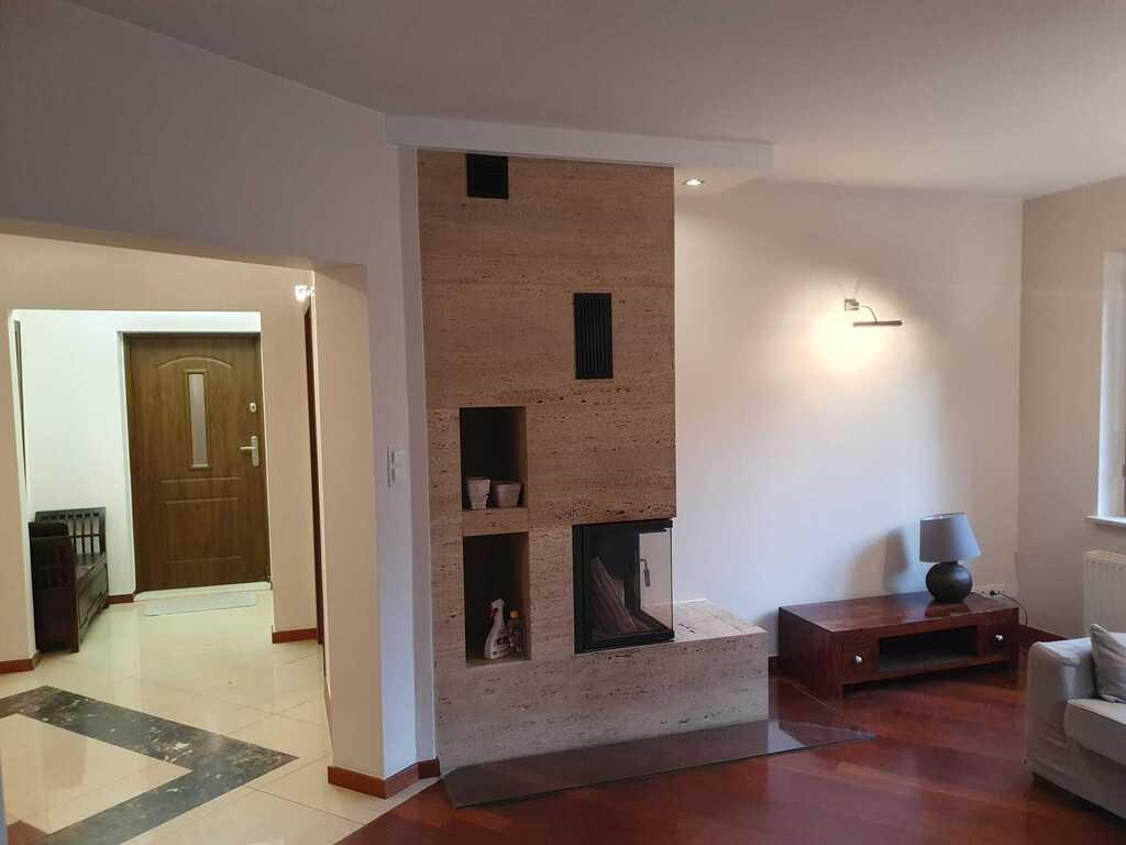 - bardzo przestronny salon z wyjściem na taras i pięknym kominkiem obudowanym kamieniem naturalnym